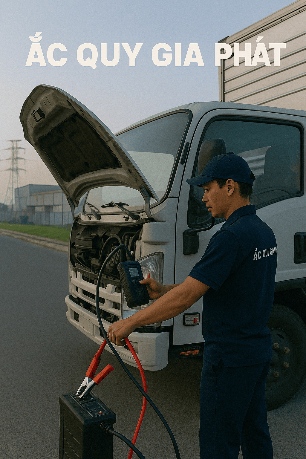 Kich bình ắc quy xe tải tại Bình Dương bởi dịch vụ cứu hộ 24/7 của Ắc Quy Gia Phát.