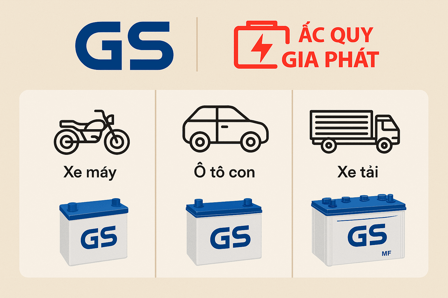 Đa dạng các dòng ắc quy GS cho xe máy, ô tô, xe tải tại Ắc Quy Gia Phát TP.HCM.