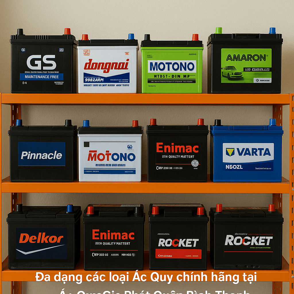 - Thương hiệu: GS, Đồng Nai, Delkor, Varta, Rocket, Amaron, Panasonic, AtlasBX,...