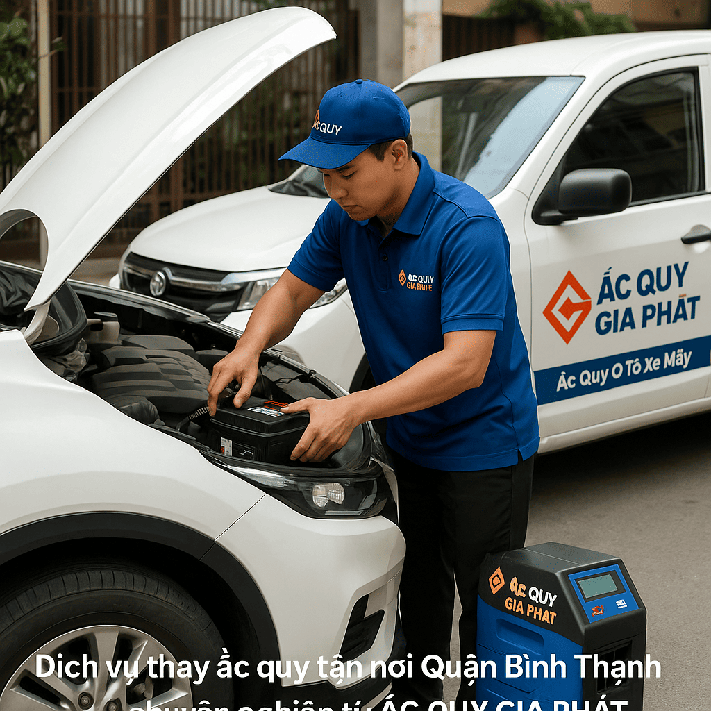 Không cần phải mất thời gian di chuyển, Ắc Quy Gia Phát cung cấp dịch vụ thay ắc quy tận nơi tại Quận Bình Thạnh và các khu vực lân cận. Chỉ cần một cuộc gọi, kỹ thuật viên của chúng tôi sẽ có mặt nhanh chóng, thực hiện thao tác thay lắp chuyên nghiệp, an toàn, đảm bảo hệ thống của bạn hoạt động trở lại trong thời gian sớm nhất. Dịch vụ này áp dụng cho cả ô tô, xe máy, UPS, hệ thống công nghiệp.