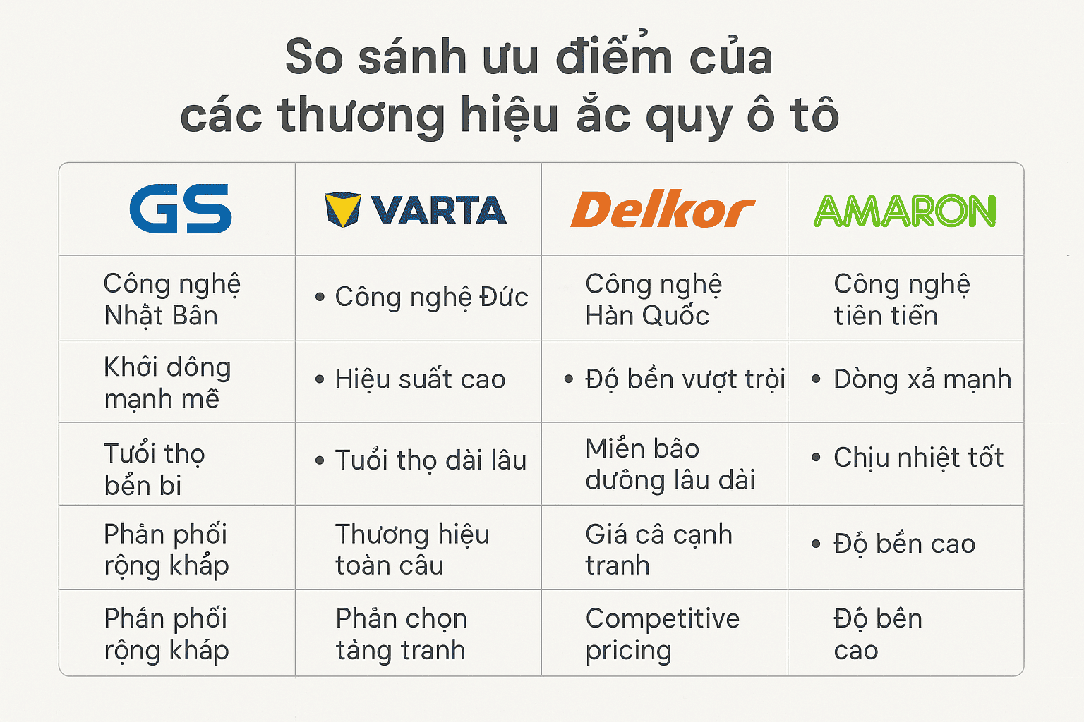 So sánh các thương hiệu ắc quy ô tô chính hãng phổ biến tại Lạng Sơn.